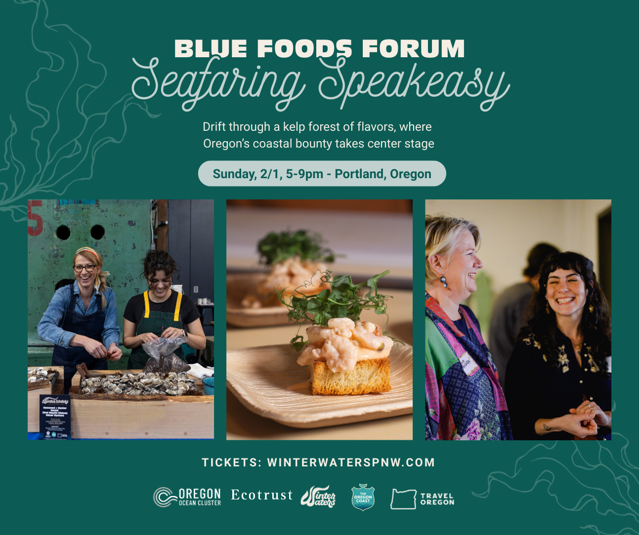 Kick off Winter Waters and the Blue Foods Forum at the Seafaring Speakeasy. Get ready to drift through a kelp forest of flavors, where Oregon’s coastal bounty takes center stage. This event is open to anyone and everyone who loves Oregon seafood.